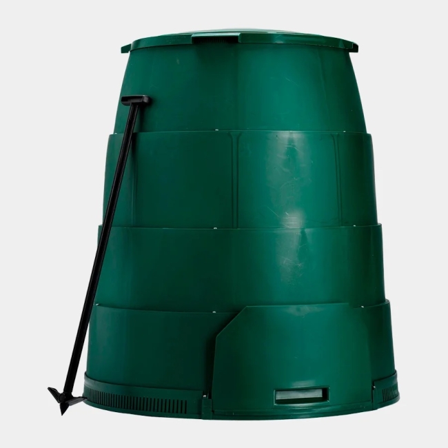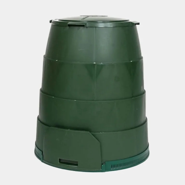 Composteur Johanna de grande capacité et sécurisé. Les intrus ne peuvent pas accéder au contenu grâce au fond sécurisé. La pluie ne peut pas lessiver le contenu car il dispose d'un couvercle.