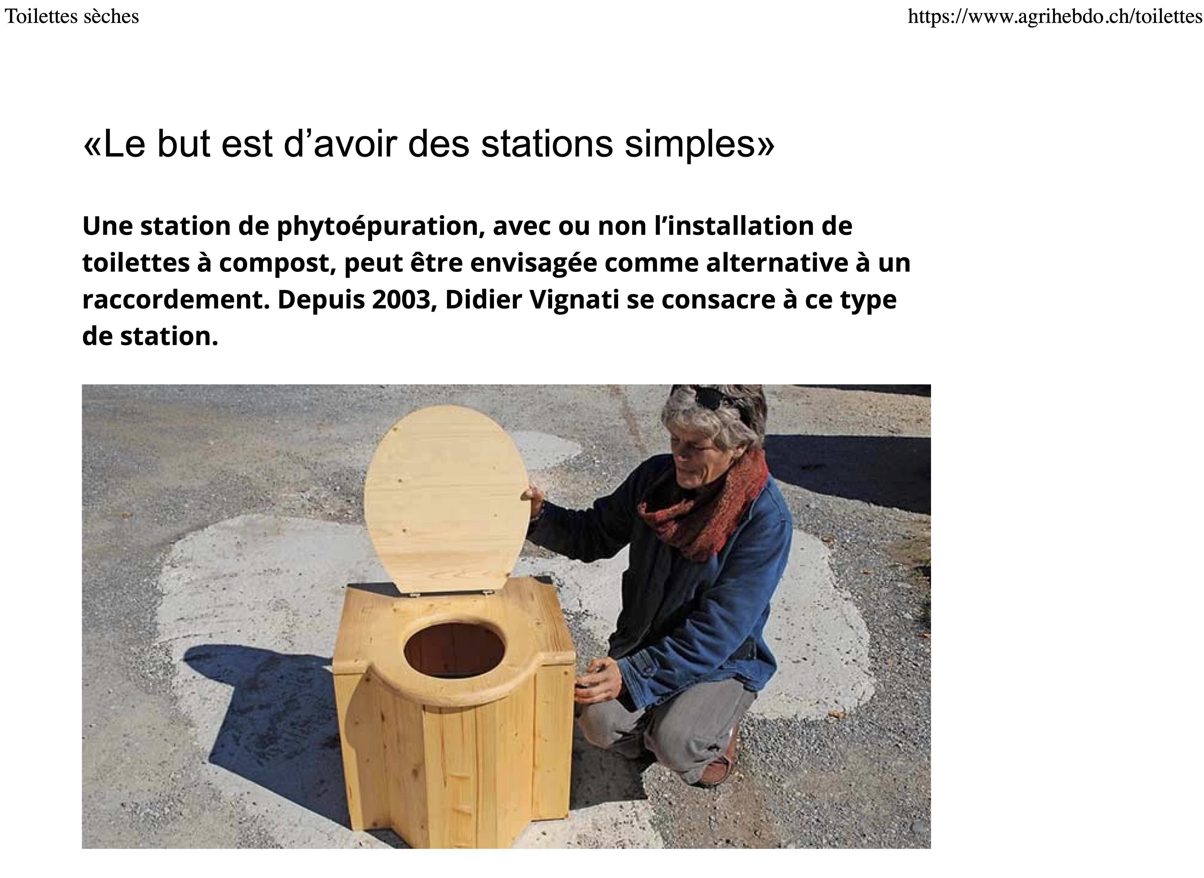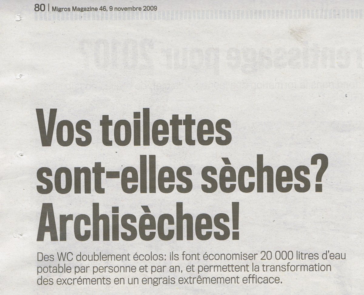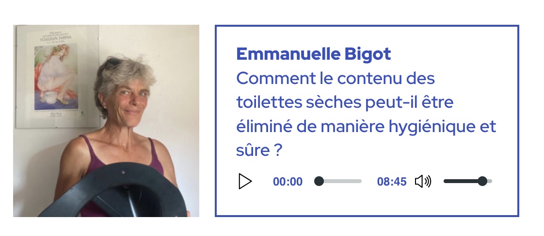 Voici un lien pour le podcast d"ici la terre" de la RTS. L’émission dure 2h30, j'y parle de toilettes sèches à partir d’1h35 (sujet de 8 minutes m).